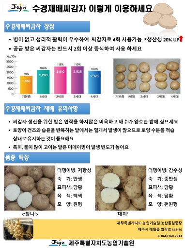한편 농업기술원 농산물원종장에서는 농업인 편의를 위해 씨감자 증식 안내 리플릿을 제작하고 씨감자 공급 시 함께 배부했다.