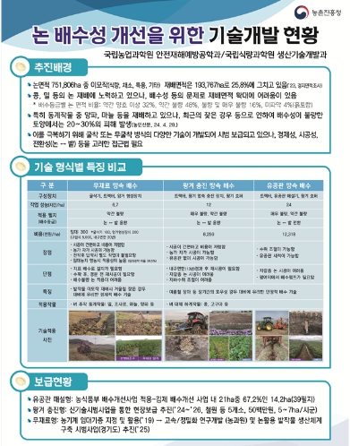 ▲ 논 배수 개선을 위한 기술개발 현황 |