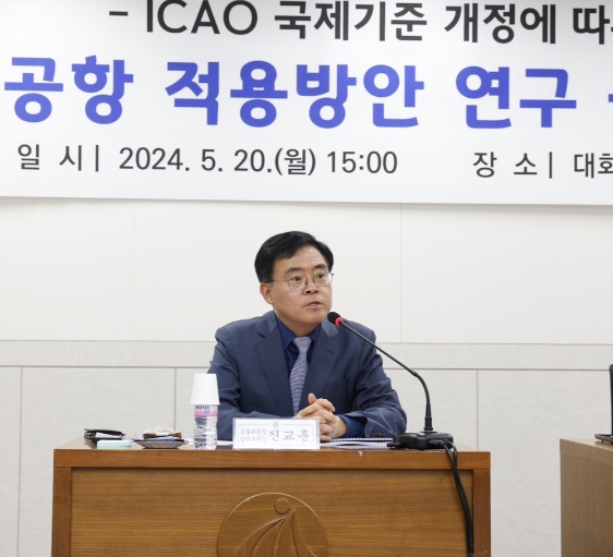 ▲ 진교훈 서울 강서구청장이 20일(월) 오후 3시 구청 대회의실에서 ‘ICAO 국제기준 개정에 따른 김포공항 적용 방안 연구 중간보고회’에서 발언하고 있다. |