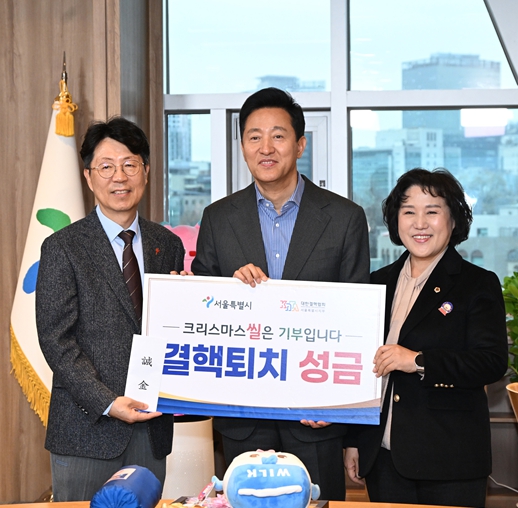 [뉴스서울] 오세훈 서울시장은 12일 15시30분 서울시청에서 김동석 대한결핵협회 서울지부회장으로부터 ‘2024년도 크리스마스 씰’을 받고 결핵 퇴치 사업에 써달라며 성금을 전달했다.