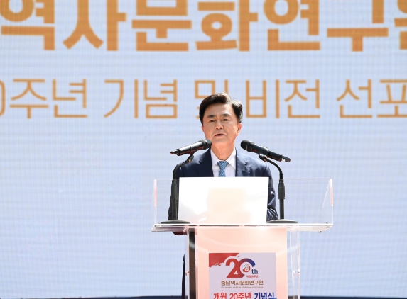 김 지사는 16일 공주시 충남역사문화연구원에서 열린 개원 20주년 기념행사 및 비전 선포식에서 “충남은 고려초 최대 규모의 왕실사찰인 천안 천흥사지 발굴과 내포권역 천주교 성지 복원 등 잠재력이 무궁무진하다”며 “이제는 세계 속 역사문화관광도시라는 큰 그림을 그려야 할 때”라고 말했다.