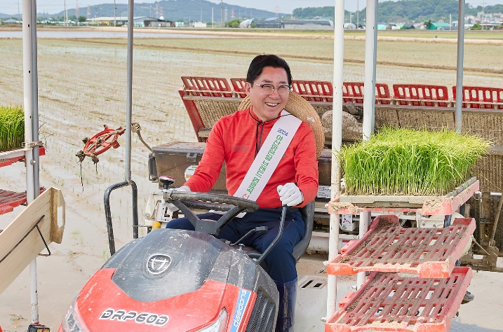 [뉴스서울] 박경귀 아산시장이 모내기 시즌을 맞이해 17일 아산맑은쌀의 신품종인 해맑은벼·달맑은벼 이앙행사에 참여했다.