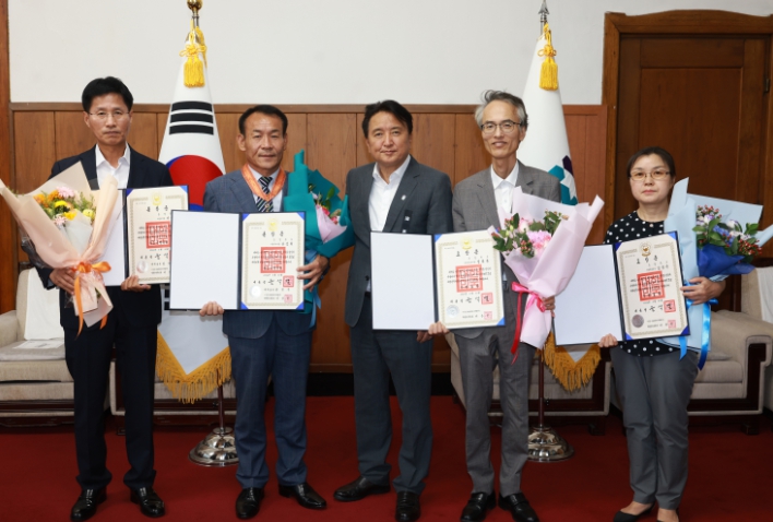 [뉴스서울] 김영환 충북도지사는 15일 충북도청 여는마당에서 2024년 상반기 퇴직공무원 4명에게 훈장과 포장을 전수했다.