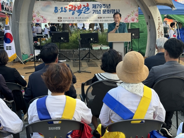 [뉴스서울] 운강이강년기념관은 박열의사기념사업회·한두리국안단·문경시풍물단체연합회와 공동으로 8월 15일 문화의 거리 메인무대에서 제79주년 광복절 기념·문화행사를 개최했다. 이날 행사에는 신현국 문경시장, 시·도의원, 각급기관 단체장, 독립운동가 후손, 시민 등 200여 명이 참석해 호국선열들의 숭고한 나라 사랑 정신을 되새겼다.