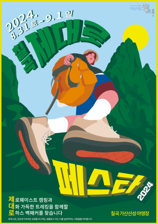[뉴스서울] 트레킹과 캠핑을 선호하는 젊은층의 여행 트렌드를 반영한 ‘칠곡 제대로페스타’가 8월 31일부터 9월 1일까지 1박 2일 일정으로 팔공산국립공원 가산산성 야영장 일대에서 개최된다.