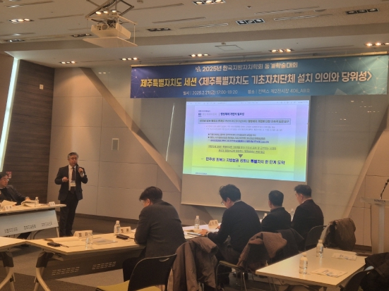[뉴스서울] 제주특별자치도와 한국지방자치학회는 지난 2월 21일 경기도 킨텍스 제2전시장에서 열린'2025년 한국지방자치학회 동계학술대회'에서‘제주형 기초자치단체 설치 의의와 당위성’, ‘지방자치에서 기초자치단체가 가지는 법률적 의의’를 주제로 제주 세션 토론회를 가졌다.