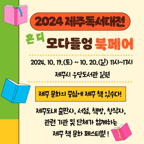 [뉴스서울] 우당도서관은 2024 제주독서대전 프로그램 중 ‘혼디 모다들엉 북페어’에 참여할 제주도 내 출판사, 서점, 동네책방, 창작자 등 30개 팀을 8월 23일부터 9월 6일까지 공개 모집한다.