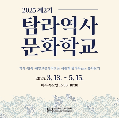 [뉴스서울] 제주특별자치도 민속자연사박물관이 제주의 정체성 재조명을 위한 ‘2025 제2기 탐라역사문화학교’를 3월 13일부터 5월 15일까지 운영한다. 매주 목요일(오후 4시 반~6시 반) 박물관 시청각실(모다들엉관)에서 진행된다.