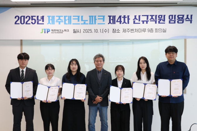 [뉴스서울] 제주테크노파크(원장 지영흔, 제주TP)가 1일 제주벤처마루 9층 회의실에서 6명의 신규직원에게 임명장을 수여했다.