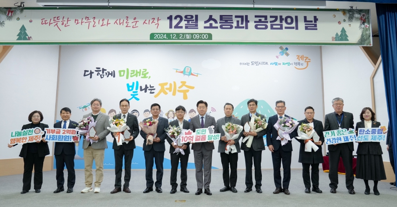 제주도는 ‘12월 소통과 공감의 날’ 행사에서 걷기 기부 캠페인 참여 기관과 기업에게 감사패를 전달했다.