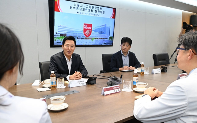 ▲ 오세훈 서울시장이 2일(월) 오후 서울 성북구 고려대 안암병원을 찾아, 응급의료체계 점검을 위해 병원 관계자들과 면담하고 있다 |