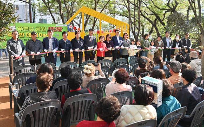 [뉴스서울] 해운대구는 16일 재송2동 치안센터 옆 푸른숲공원의 새단장 준공식을 가졌다.