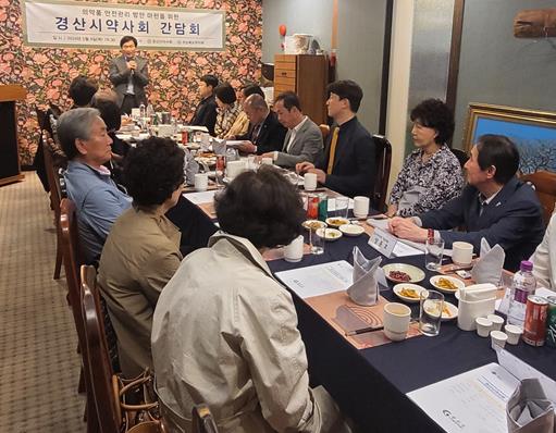 [뉴스서울] 경산시는 9일 지역 내 식당에서 경산시약사회와 약국의 의약품 및 마약류 취급 등의 안전 사용 환경 방안 마련을 위한 간담회를 했다.