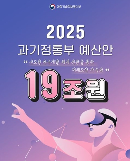 2025년도 정부 예산안 및 기금운영계획안에 편성된 과기정통부 예산[안]은 총 19조 원으로 역대 최대 규모입니다.