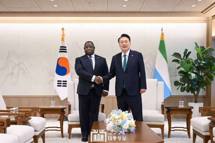 ▲ 5월 31일 윤석열 대통령은 한-아프리카 정상회의 참석을 위해 공식 방한한 줄리우스 마아다 비오 시에라리온 공화국 대통령과 소인수 환담, MOU 서명식, 오찬 회담을 갖고, 양국 관계 발전에 대해 의견을 교환했다. |