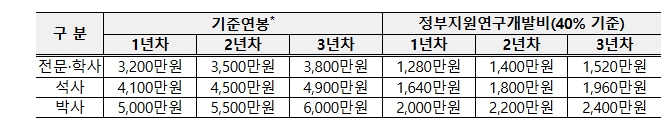중소기업이 전문·학·석·박사 연구인력(신진·고경력) 채용 시 해당 연구인력 인건비의 최대 50%를 3년간 지원한다.