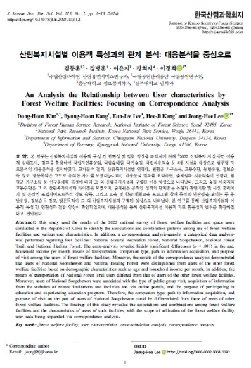 산림청은 1988년 유명산, 대관령 등 자연휴양림을 시작으로 생애주기별 산림복지시설을 조성하고 그에 맞는 맞춤형 서비스를 운영하고 있다. 그러나, 지금껏 산림복지시설의 조성과 운영 목적에 따른 이용자의 방문 특성이 확인된 바 없었기에, 이번 연구 결과가 앞으로 수요자의 이용 특성을 파악하는 데 의미가 있을 것으로 보인다.
