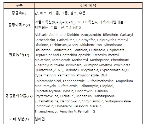 ▲ 사료에 대한 유해물질 등 검사 항목 |