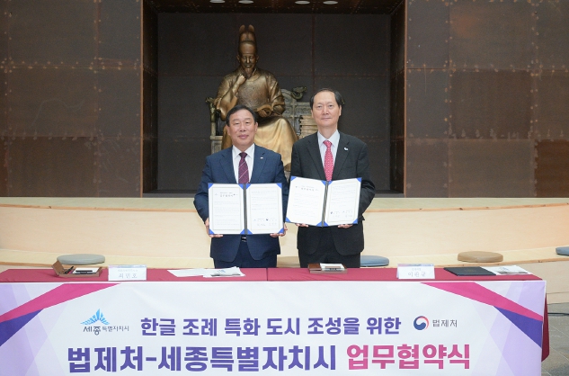 [뉴스서울] 세종특별자치시가 법제처와 한글 조례 특화 도시 만들기를 위해 힘을 모으기로 약속했다.