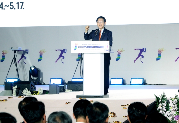 식전 행사에서는 ‘손으로 노래하는 세계 유일 핸디래퍼’ 김지연(청각장애인), 음주 교통사고로 프로축구 선수 생활을 접고 패럴림픽에 도전하는 유연수(지체장애인) 등이 장애 학생들에게 꿈과 희망의 메시지를 전달하고 개식 통고를 했다.