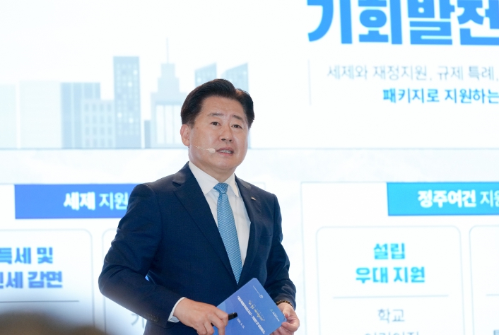 오영훈 지사는 “향토기업 육성뿐만 아니라 상장기업 육성 유치 등을 통해 좋은 일자리를 만들고 지역도 발전할 수 있기 때문에 제주의 새로운 미래는 기업과 함께 새로운 비즈니스 모델을 만들어갈 수밖에 없다”며 “지속가능한 미래를 위해 기업하기 좋은, 더 나은 여건을 만들어 나가겠다”고 밝혔다.