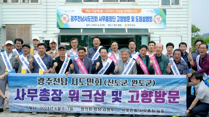 [뉴스서울] 전라남도는 6일 진도에서 광주전남시도민회 사무총장단협의회 고향 방문 및 도정 설명회를 개최했다. 이날 참석자들은 고향사랑기부금을 기탁하고 국립의대 설립 등 도정 현안 해결에 앞장설 것을 다짐했다.