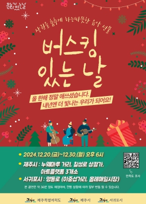 [뉴스서울] 제주특별자치도는 연말연시를 맞아 제주시와 서귀포시 원도심에서 문화공연 ‘버스킹 있는 날’을 개최한다.