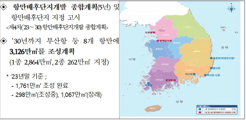 ▲ 항만배후단지 지정(항만법 제44조 및 제48조) |