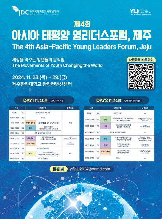 [뉴스서울] 제주국제자유도시개발센터가 주최·주관하는 ‘제4회 아시아 태평양 영리더스포럼, 제주’가 오는 11월 28일 목요일부터 29일 금요일까지 이틀간 제주한라대학교 한라컨벤션센터에서 개최된다.