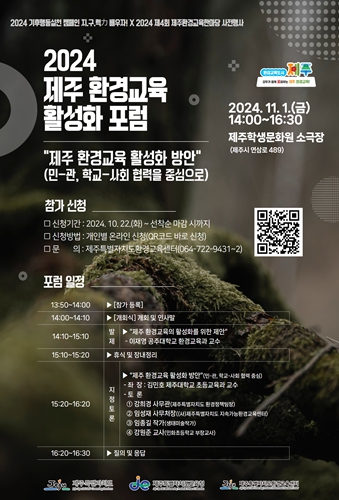 첫날인 11월 1일 오후 2시부터 5시까지 제주학생문화원 소극장에서 ‘2024 제주 환경교육 활성화 포럼’이 열린다. 이 포럼에서는 민관 협력과 학교-사회 영역 연계를 통한 제주 환경교육 활성화 방안이 논의된다.