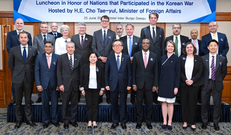[뉴스서울] 조태열 외교장관은 6월 25일 12:00-13:30간 대구에서 ‘6.25전쟁 제74주년 행사’에 참석한 6.25전쟁 참전국 주한외교단들을 대상으로 오찬을 주최했다. 이번 오찬은 대한민국의 자유와 민주주의 수호에 기여한 22개 참전국과 2백만여 명의 참전용사들의 희생과 노고에 경의를 표하기 위해 마련됐다.