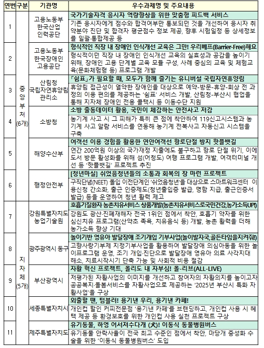 ▲ 성과공유대회 발표 우수과제(11개) 주요내용 |