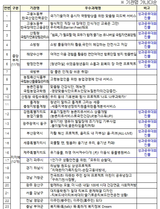 ▲ 2024년 공공서비스디자인 우수과제 목록(23개) |