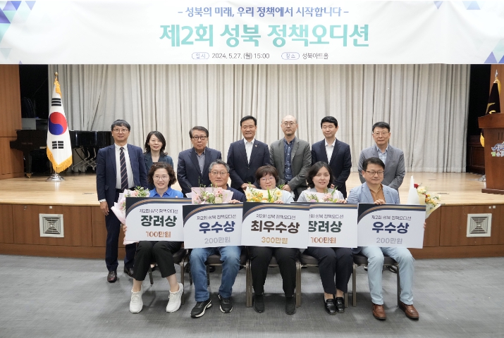 제2회 성북 정책오디션의 최우수는 복지정책과 조연희 팀장의 '취약계층 안부확인 이렇게 하는 건 어떨까요?'로 돌아갔다. 우수는 기획예산과 임영근 팀장이 제안한 '마을버스 노선조정을 통한 성북동 문화관광 활성화'와 건축과 정용근 팀장의 '야간조명 설치를 통한 아름답고 품격있는 성북조성'이 차지했다. 장려는 문화체육과 김하연 팀장의 '빛나는 성북, 꿈꾸는 성북천! 야간 경관 랜드마크 ‘성북별빛마당’ 조성'과 공원녹지과 최수영 팀장의 '귀로 들으며 걷는 공원 산책, ‘파크 도슨트’'가 차지했다.