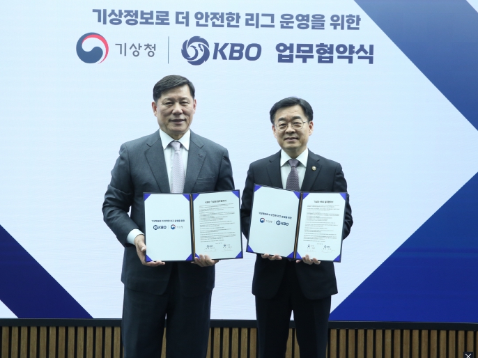 [뉴스서울] KBO(총재 허구연)와 기상청(청장 장동언)은 3월 7일(금) KBO 스튜디오에서 업무협약(MOU)을 체결했다.