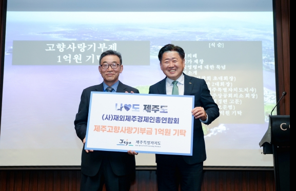 [뉴스서울] 제주특별자치도는 7일 콘래드 서울에서 열린 ‘재외제주경제인총연합회 회장 이·취임식’에서 제경련 회원들이 제주에 고향사랑기부금을 기탁한다고 밝혔다.