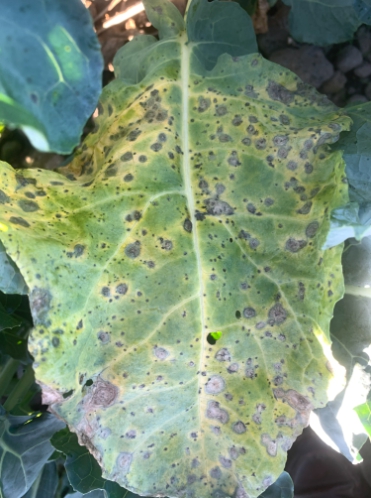 검은무늬병은 잦은 강우로 인한 과습과 밀식된 환경에서 곰팡이에 의해 발생하며, 작은 반점에서 시작해 회갈색 또는 암갈색 원형 병반으로 확대된다. 심할 경우 병반이 화뢰까지 번져 수확이 불가능해진다.