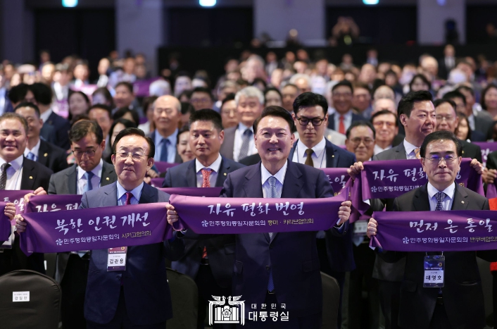 오늘 민주평통 해외지역회의는 ‘자유 평화 번영의 통일 대한민국’이라는 주제로 「8.15 통일 독트린」에 대한 해외지역 자문위원들의 이해를 제고하고, 국제사회의 지지를 확산하기 위해 개최됐다. 대통령은 취임 이래 매년 민주평통 회의에 참석하고 있으며, 2022년 해외지역회의와 2023년 전체회의에 이어 이번이 세 번째이다.
