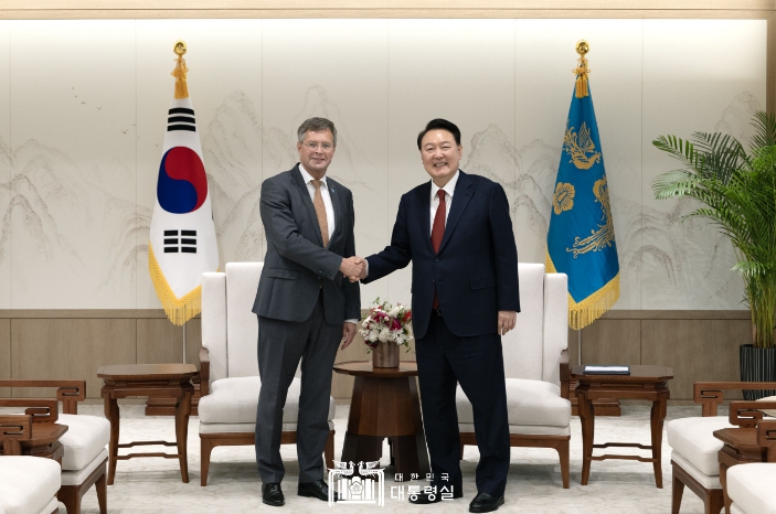 ▲ 9월 9일 윤석열 대통령은 한국을 방문 중인 「얀 페이터 발케넨데(Jan Peter Balkenende)」 前 네덜란드 총리를 접견하고, 한-네덜란드 양국 관계, 기후 및 환경 위기 대응 협력과 국제 정세 등에 대한 의견을 교환했다. |