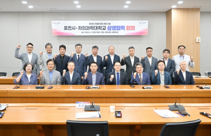 [뉴스서울] 포천시는 지난 17일 포천시청 시정회의실에서 차원태 차의과학대학교 총장을 비롯한 30명의 관계자가 참석한 가운데, 포천시와 차의과학대학교의 상생발전을 위한 회의를 개최했다.