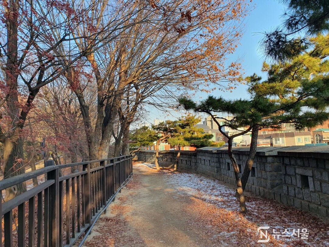 [뉴스서울] 반얀트리호텔부터 연결되는 장충체육관 뒷길은 평지부의 석성 형태의 성벽이 남아 있다.
