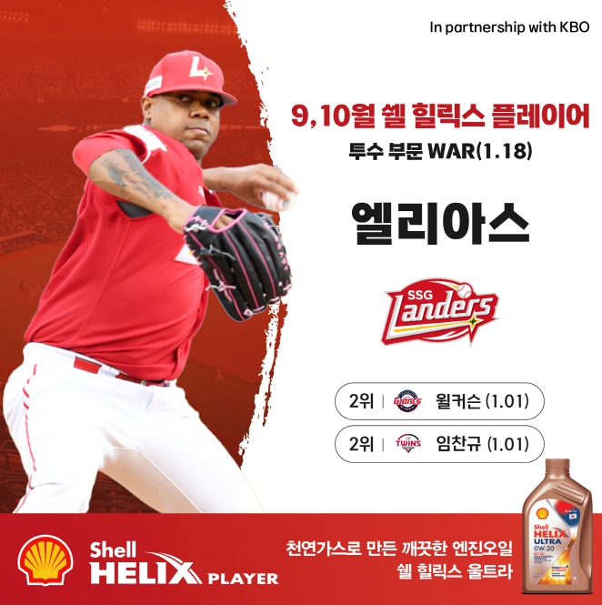 [뉴스서울] KBO와 한국쉘석유주식회사(이하 ‘한국쉘’)가 함께 시상하는 ‘쉘힐릭스플레이어’의 2024 KBO 리그 9-10월 수상자로 SSG 엘리아스와 NC 데이비슨이 각각 선정됐다.
