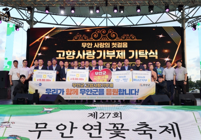 [뉴스서울] 전남 무안군은 제27회 무안연꽃축제 개최를 기념하여 무안·영암·해남 농축협과 함께하는 고향사랑 상호기부 기탁식을 개최했다고 25일 밝혔다.