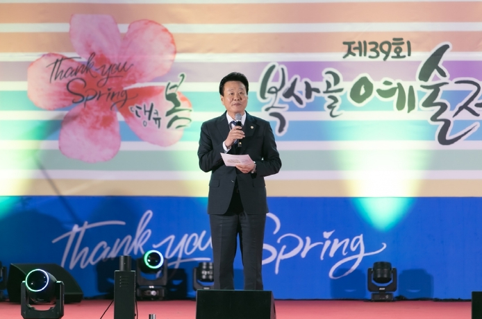 | ▲ 1. 최성운 의장이 제39회 복사골예술제 개막식에서 축사하고 있다. |