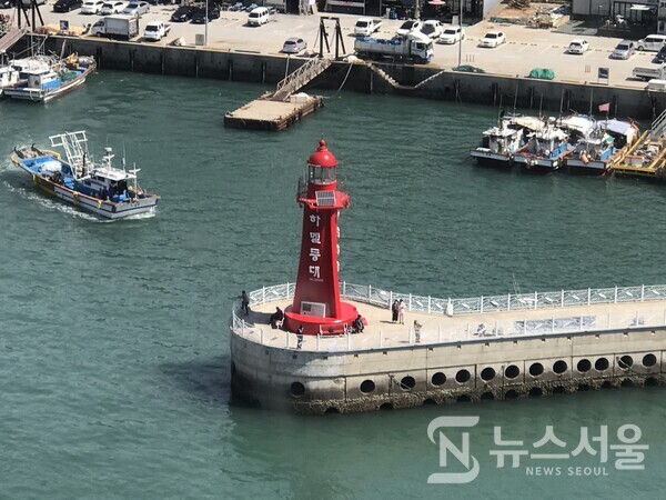 [뉴스써치] 여수시 동문동 여수구항 방파제에는 높이 10m의 붉은색 콘크리트 구조물이 바다를 향해 서 있다. 바로 하멜등대이다.