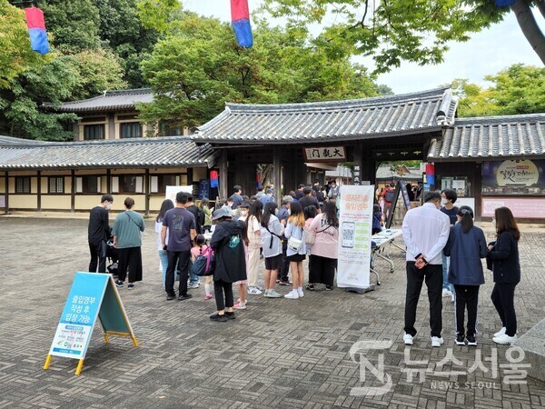 [뉴스서울] 한글날 연휴 첫 날인 9일 오전 용인시 한국민속촌은 휴일을 즐기려는 시민들의 발길이 이어지고 있다.