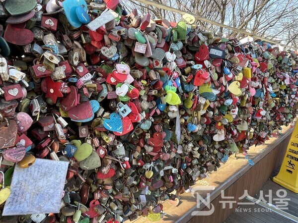 [뉴스서울] 서울의 대표적 도심의 명소인 남산에 오르면 난간마다 자물쇠가 매달려 있다. 영원한 사랑을 약속하는 의미로 뭇 연인들의 희망을 담아 쓴 하트모양의 맹세가 자물쇠에 매달려 있다.