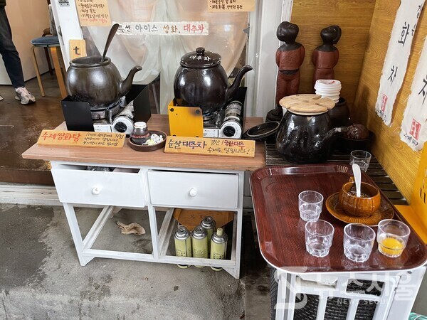 전통 약탕기에 끓인 수제 쌍화차와 대추차, 수제 식혜, 전통과자 등 관광객들의 눈길을 사로잡는 가게들이 좁은 골목 곳곳에 자리하고 있다.