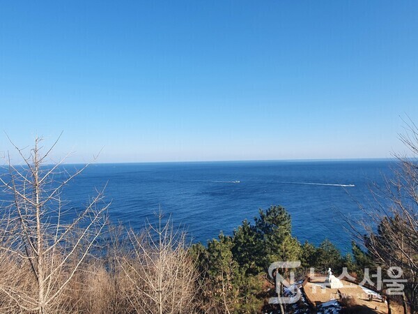 사진은 지난 1월 29일 오후 필자가 거진해맞이봉 정자에서 촬영한 파아란 동해바다의 모습이다.