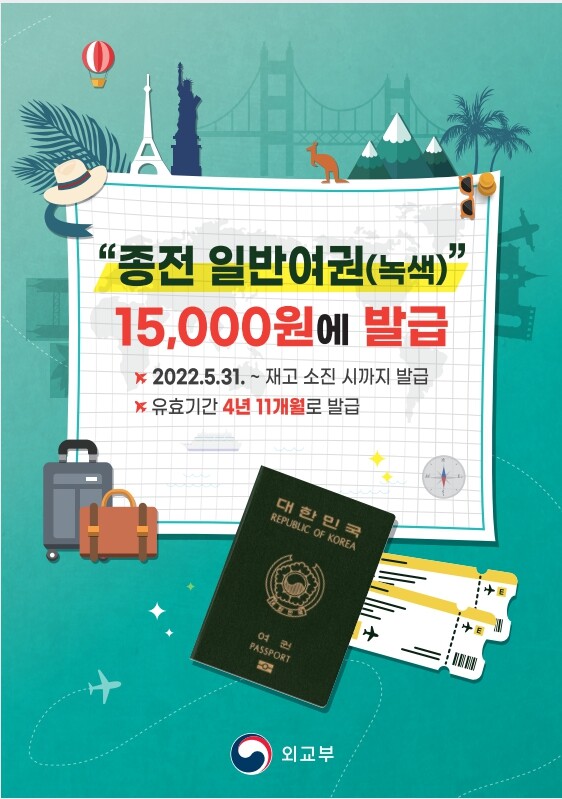 종전 일반여권은 유효기간 5년 미만, 발급수수료 1만 5천원으로 여권발급 비용이 가장 저렴해 시민들이 비용을 절감할 수 있다.